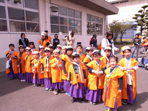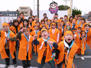 | 踊り参加の面々。 保護者の方も、踊ってくれました。 団は家族って感じです。 |