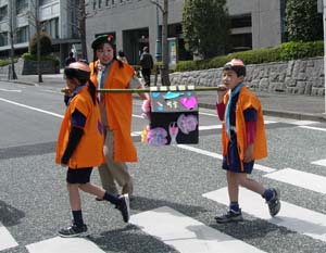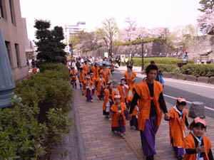 | 登城行列の西コースに参加。 新通り小学校から、駿府城を目指します。 かっこいいぞ。 ビーバーは、子供武者。 |