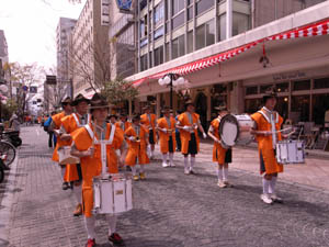 | トランペット鼓隊も、堂々の行進。 七間町を、演奏して、歩きました。 ボーイスカウトって分かるかな??? |