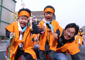 | 元気いっぱい。 祭りの夜だ。 たのしいぞ、うれしいぞ。 |
