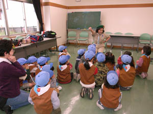 | 今日の集会は雨になってしまいました。 読み聞かせの後・・・ |