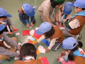 | みんなで折り紙を折ってます。 何を作っているの、どうするの? |