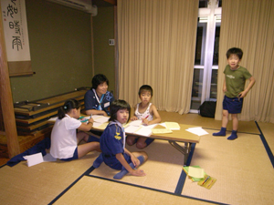| ボーイ隊の班集会。 キャンプの予定を決めています。 |