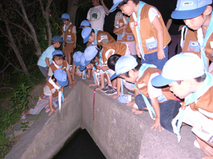 | そこには、小魚がいっぱい。 ハヤの子や、ドジョウの子を 捕まえました。 |