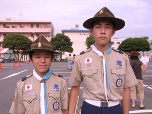 | 目抜き通りをパレードします。 富士のスカウトと一緒に。 気合入れていきました。 |