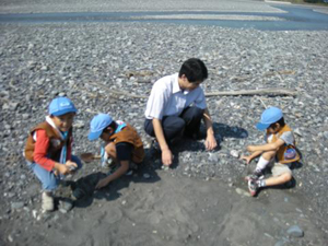 | 今日は安倍川で・・ 石を拾ってます。 何にするのでしょう? |