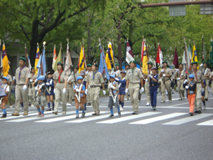| 今年も、大阪御堂筋パレードに参加です。 スカウト運動100周年を祝うパレード 大阪連盟の人たちと、コラボしました。 |