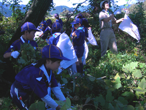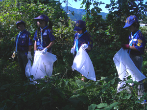 | カブ隊も隊集会。 今日は、安倍川の カブ森へ清掃奉仕に行きます。 カブ森は、大きな木もあって、 基地を作ったり、 ターザンごっこをしたり。 楽しい場所です。 |