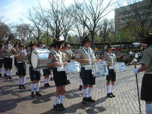 | もちろん、トランペット鼓隊も パレードします。 今回は新曲も披露しました。 |