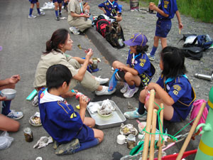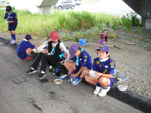 | 差し入れのスイカを頂いて、 美味しそうです。 スカウトたちは良い経験でした。 |