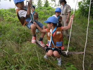| 公園の遊具と違って 痛かったり、落ちたりするけれど、 そんな中で、様々な感覚を 磨きます。 |