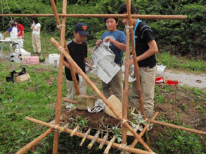 | また、結索法の修得で、 エコも考えて立ちカマド製作です。 |