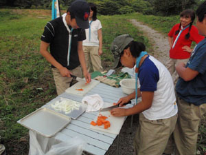 | 食事の製作風景。 自分達で考えたメニューです。 もちろん好き嫌いはないですよねえ |