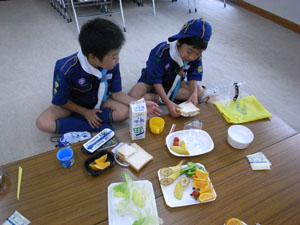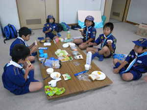 | 宿泊の練習と、 スカウトの組のコミュニケーションが 目的です。 |
