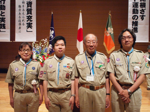 | 更に、ビーバー隊副長 ボーイ隊副長のお2人に対し 永年の奉仕の功績を称え 県連有効章が授与されました。 おめでとうございます。 |