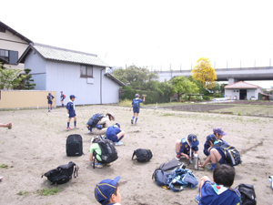 | カブ隊は、畑へ しかしそこには、何もありません。 そうです。 これから、苗を育てます。 |