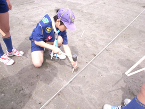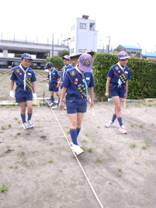 | 歩測や、ロープを利用して。 各組分を、当分に分けました。 |