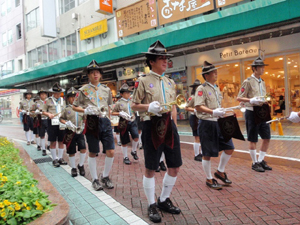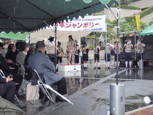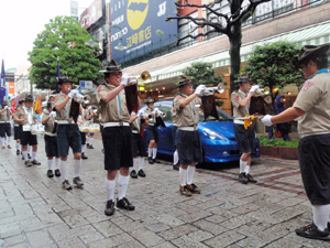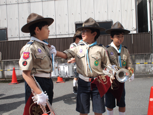| 地元の中央商店街の 歩行者天国での演奏。 ボーイスカウトの良いPRが できたと思います。 |
