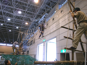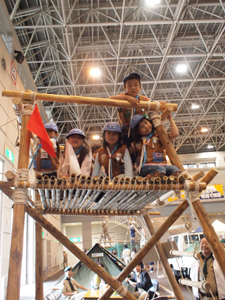 | 続いて通信塔。 木材とロープだけで作られています。 少しゆれるところが、面白い!! |