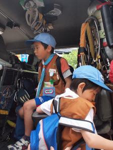 | 雨は、結構降ってました。 寒かったし・・・ でもカッパを着ちゃうと ボーイスカウトだかなんだか 分からなくなるしね。 |