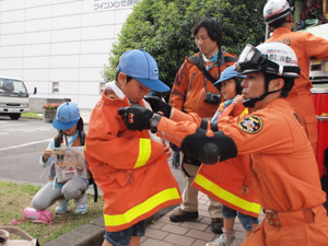| 消防士さんに、消防服を 着させて頂きました。 |