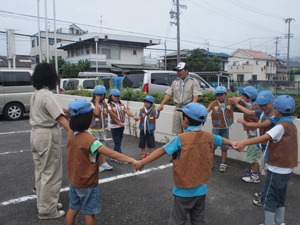 | 最後に、大きな輪で解散です。 キャンプまで元気に過ごしてね。 隊長とのお約束を守ってね。 |