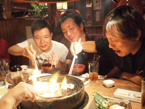 | ほとんど食べてるだけ??? 少しだけ真剣に議論しましたが 何せ100回あります。 ねたを取っておかないとね。 |