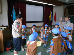 | ビーバーからカブへ。 やくそくとさだめを、しっかりと 唱えます。 |