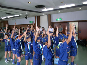 | その後は、育成会総会。 スカウト活動はスカウト自身のものなので、 スカウトも参加です。 普通は保護者だけだと思いますが 26団の考え方です。 |