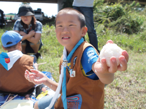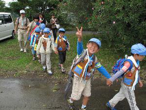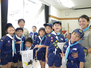 | カブスカウトが ニコニコ顔で集まってきました。 今年の集会が始まります。 |