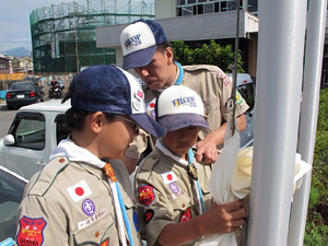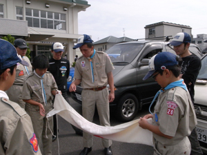 | その後は、わざわざ六本木から ローバー隊のリーダーを招き?? 国旗の扱いについて訓練 |