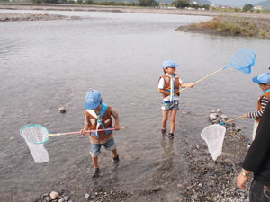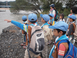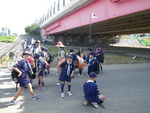 | 日が出ていて、少し暑かったので スカウト「隊長、水に入っていい??」 |