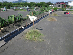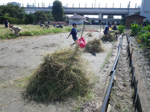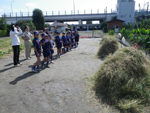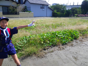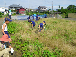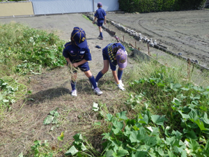 | 何と畑は雑草だらけ。 隊長「よし、雑草を抜くぞ! 組ごとの競争だ」 |