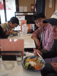 | 昼時のお蕎麦屋さんでは、 長居ができず・・・ つるつるっと、終了しました。 当然ながら、話し合いは真剣でした。 |