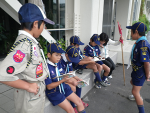 | カブ隊は、隊集会の前に 組ごとで、歌の練習です。 |