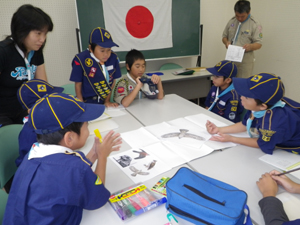 | 今日は合同の班集会 班旗などのデザインを考えました。 |