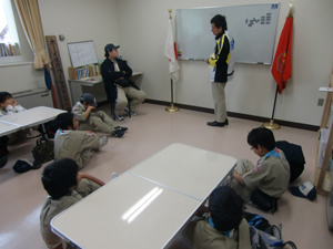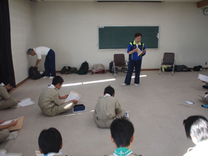| 日赤の指導員を招いての 講習会です。 他団のスカウトと一緒に 研修しました。 交流も生まれて 楽しかったそうです。 |