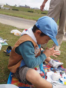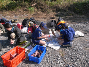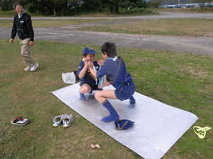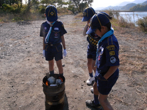 | 一方カブ隊は、安倍川で。 前回収穫したお芋で 焼き芋を作ります。 しっかり準備をしましょう。 |