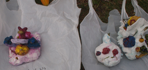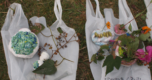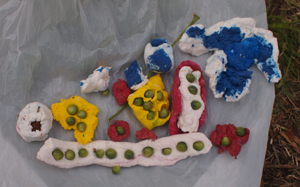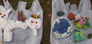 | 粘土などを使い 秋の実とのコラボオブジェ 創造力を働かせるところが、 楽しいです。 |