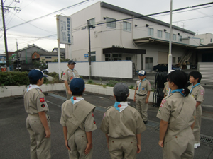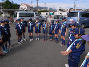 | 隊集会の閉会です。 全体で集まって隊長の話を聞いたり 国旗儀礼をしたりします。 |