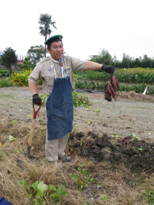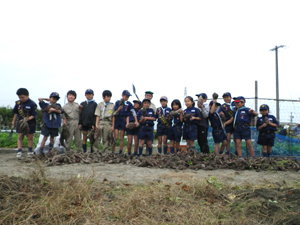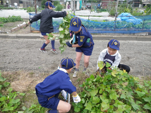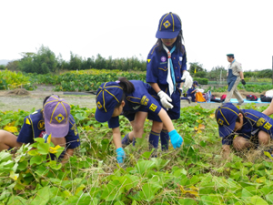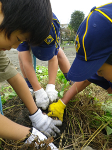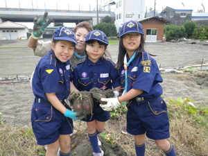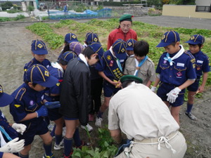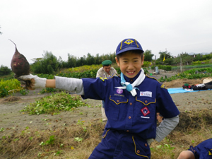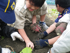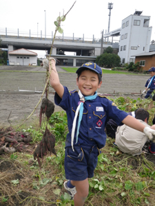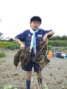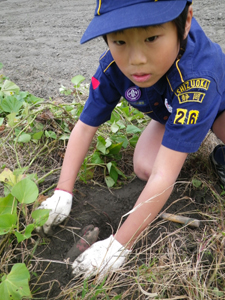 | カブ隊は 長い間かかって育てた お芋の収穫です。 |