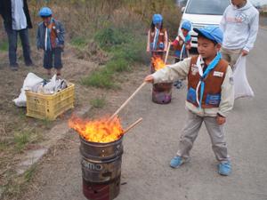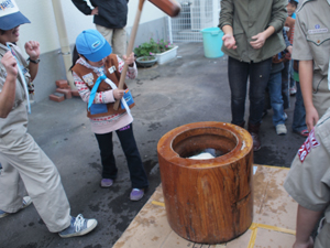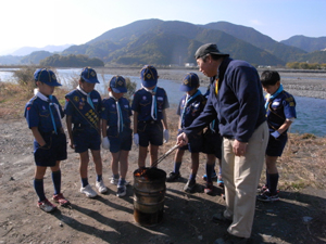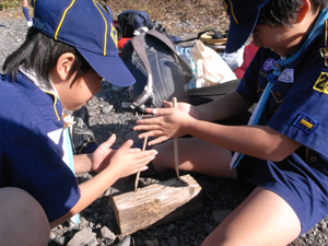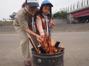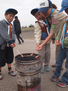 | 最初は火を怖がっていたけど だんだんなれてきたね。 スカウトが 「火は怖いけど、料理に使えて 便利だね」といってました。 |