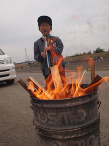 | こちらは自力で火起こし。 まあ、がんばって・・・・・ |