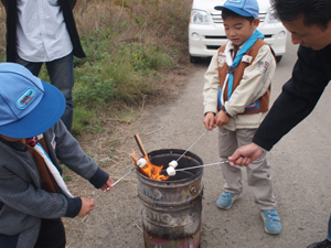 | マシュマロも焼きました。 隊長 「今日は、お菓子を作る」 スカウト 「うそだぁ」 |