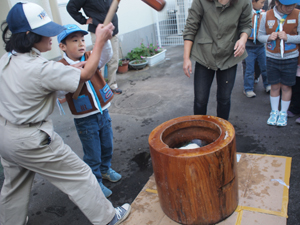 | ビーバー隊は、御餅作りの見学 お餅の作り方を習います。 |