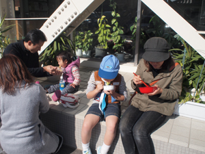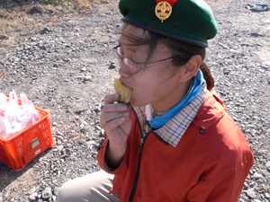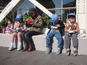 | 完成した焼き芋や 御餅を頂きました。 自分達で作ったものは美味しいね。 ましてやカブ隊は数ヶ月かけた作物。 美味しさも格別でしょう。 |