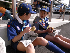 | このおいしそうな顔 自分で作って、みんなと食べると 更に美味しい。 これも、スカウトの感想です。 |