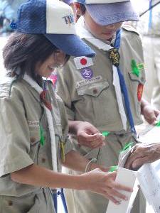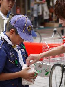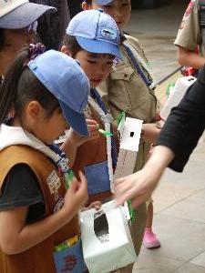 | 多くの木を植えて、 自然を増やすために スカウトたちは募金箱を 工夫してきました。 |  |