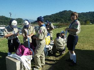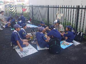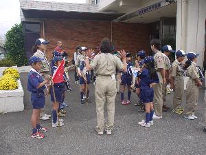 |  | 今日は、団で全体同の集会 各隊が集合しました。 |