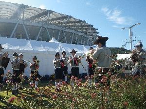 |  | トランペット鼓隊は、 演奏ダブルヘッダー 先ずはエコパで行われた 育樹祭1年前イベント 県の主催です。 |